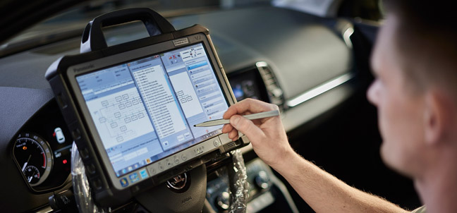Any driver can spot when a bulb has burned out, but a headlamp check is more than just “works/does not work.” To see and to be seen is the key road-safety rule,” says Tomáš Procházka. “The diagnostics software used by professional service centres checks whether the headlamp casts the beam in the correct direction and over the correct distance and also whether or not it dazzles oncoming drivers.”