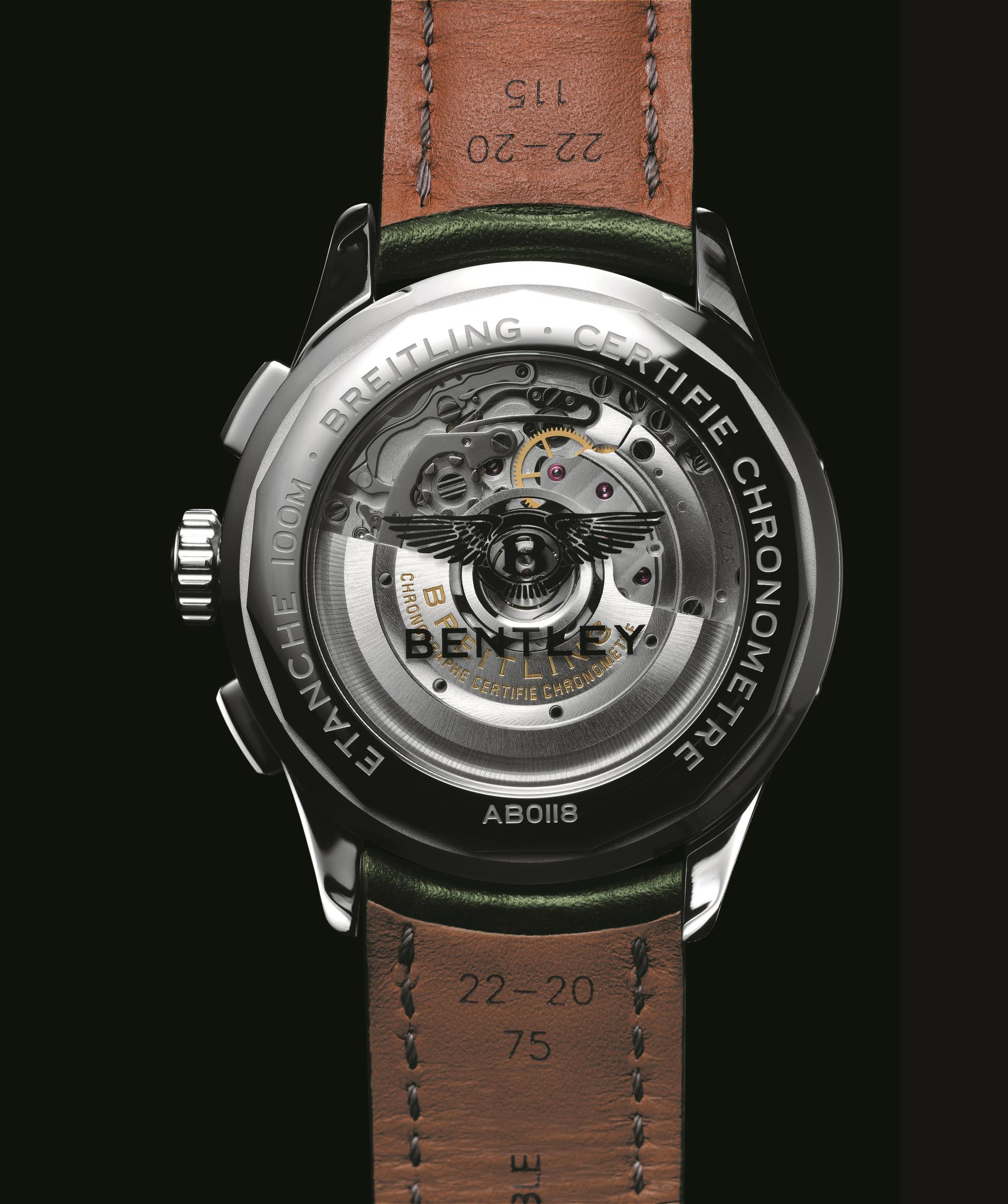 The partnership is interesting, because Breitling is integrating special Bentley editions into its core product offering, rather than in a separate ‘Breitling for Bentley’ collection. The first of the timepieces is the Premier B01 Chronograph 42 Bentley British Racing Green. Powered by Breitling’s flagship Manufacture Caliber 01 in-house mechanical movement, which is visible through a unique transparent caseback, with a metallised Bentley logo, the watch has an impressive 70-hour power reserve.