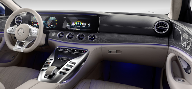 With advanced information screens and graphics being central to Merc’s dashboard layouts, AMG takes the pair of 12.3-inch high-resolution displays that feature on other top-spec Mercs to new peaks (standard on V8 models, optional for the in-line ‘six’ variants). Classic and Sport displays are now supplemented with a Supersport setting. Each of them is entirely configurable by the driver and can incorporate G-force indicators and power and torque graphs. Of course, all other in-car functions (sat-nav, heating and ventilation, entertainment and up and down shift indicators for the 9-speed automatic transmission) are also monitored via the screens.
