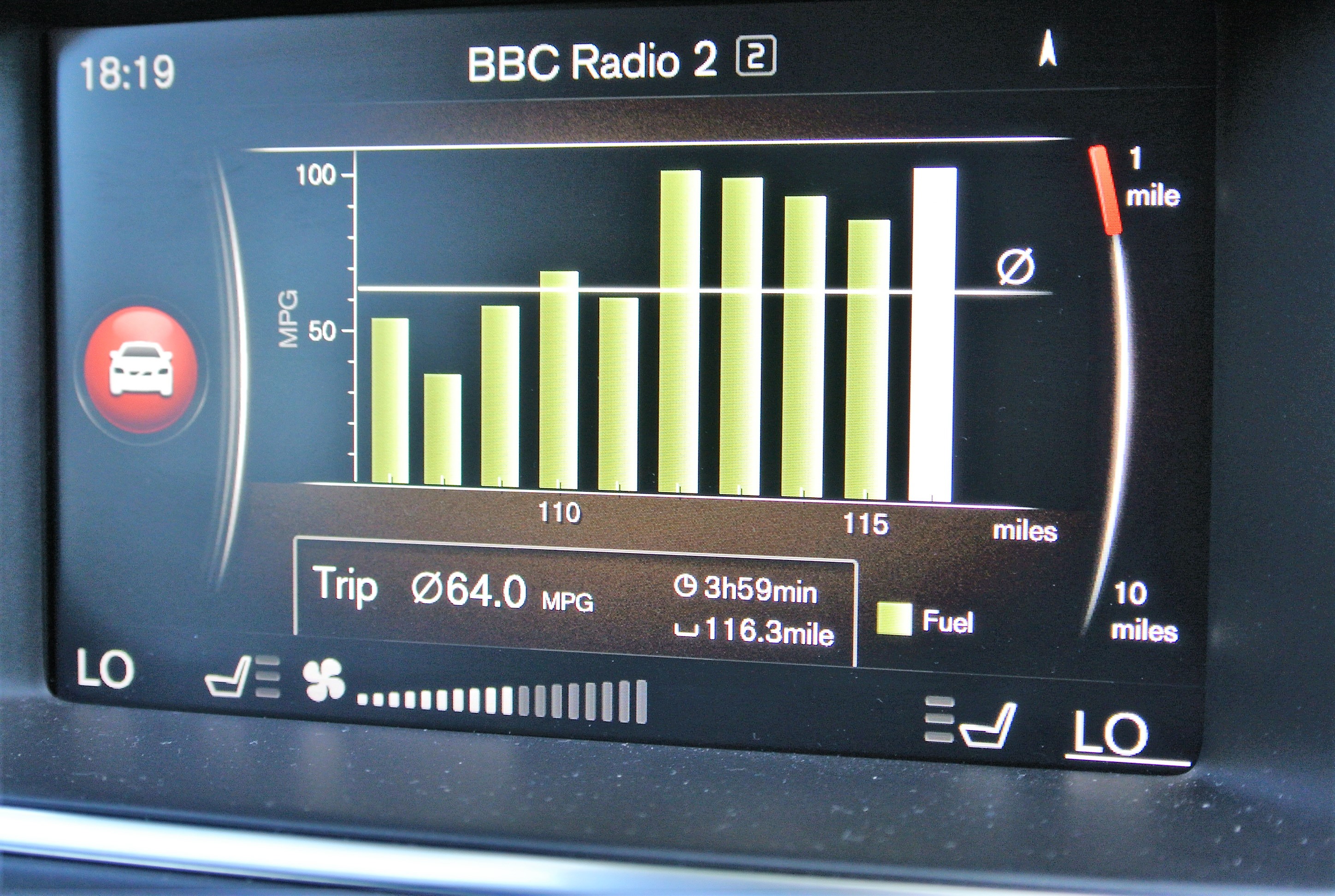 Another positive sign of the five-door V40’s relevance lies in its outstanding drivability. Low-power though the engine may be, it is gutsy enough to make cross-country (sic.) progress surprisingly relaxed and rapid. Possessing a wealth of bottom-end grunt, even though a fairly-narrow peak rev-range is suggested by the figures, shifting into any of the gearbox’s six forward ratios is met with silken punch from little more than engine idle speed. Of course, this translates into frugal fuel economy, as I attained an excellent 64.0mpg on a drive to the Lincolnshire coast, for a car rated at 61.4mpg Official Combined, while emitting a modest 122g/km CO2. Its road tax liability is £165 in year one and £140 annually thereafter.