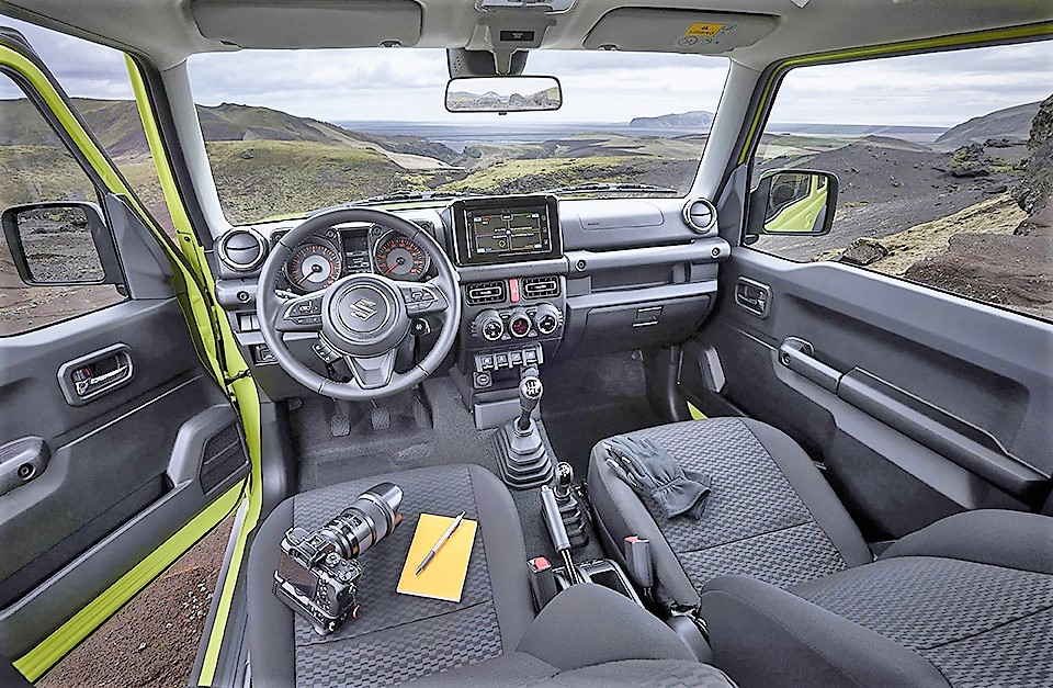 Decent ground clearance and a moderately short wheelbase, with minimal body overhangs front and rear, ensure that approach, departure and obstacle cross-over angles are optimised and uncompromised. The addition of black cladding materials on the outside of the new Jimny is a means by which to avoid incurring panel damage, when working a cross-country route. If anything, it looks significantly more workmanlike and, thus, appealing to the agricultural and other professional communities that have been given the cold shoulder by Land Rover.