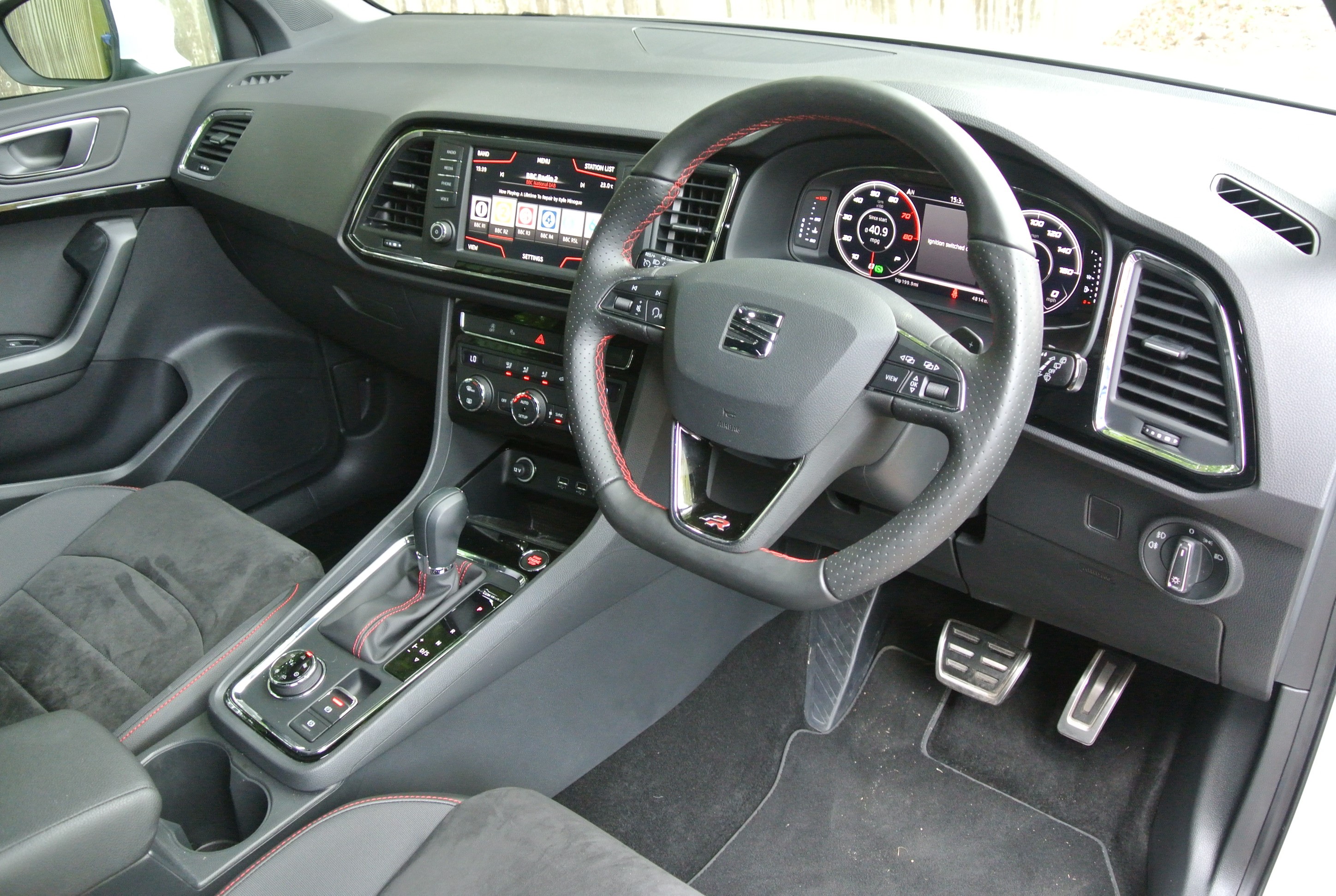 While FR is a differentiator, so too are the red stitching and red accents within the cabin. They are components of what turns the application of VW Group parts into Seat-specifics. Regardless of what you might feel about VW Group, most of its models are hugely satisfying to drive and live with, thanks to ace build quality. Mind you, it starts to get expensive at this end of the grid, as evinced by the list price of £33,315 for the test car, the FCD discounts for which you will be most grateful. The price does include the ‘keyless-go’, digital dashboard, ‘top view’ camera and 19.0-inch alloy wheels, which factor-in £2,635’s worth of extras.