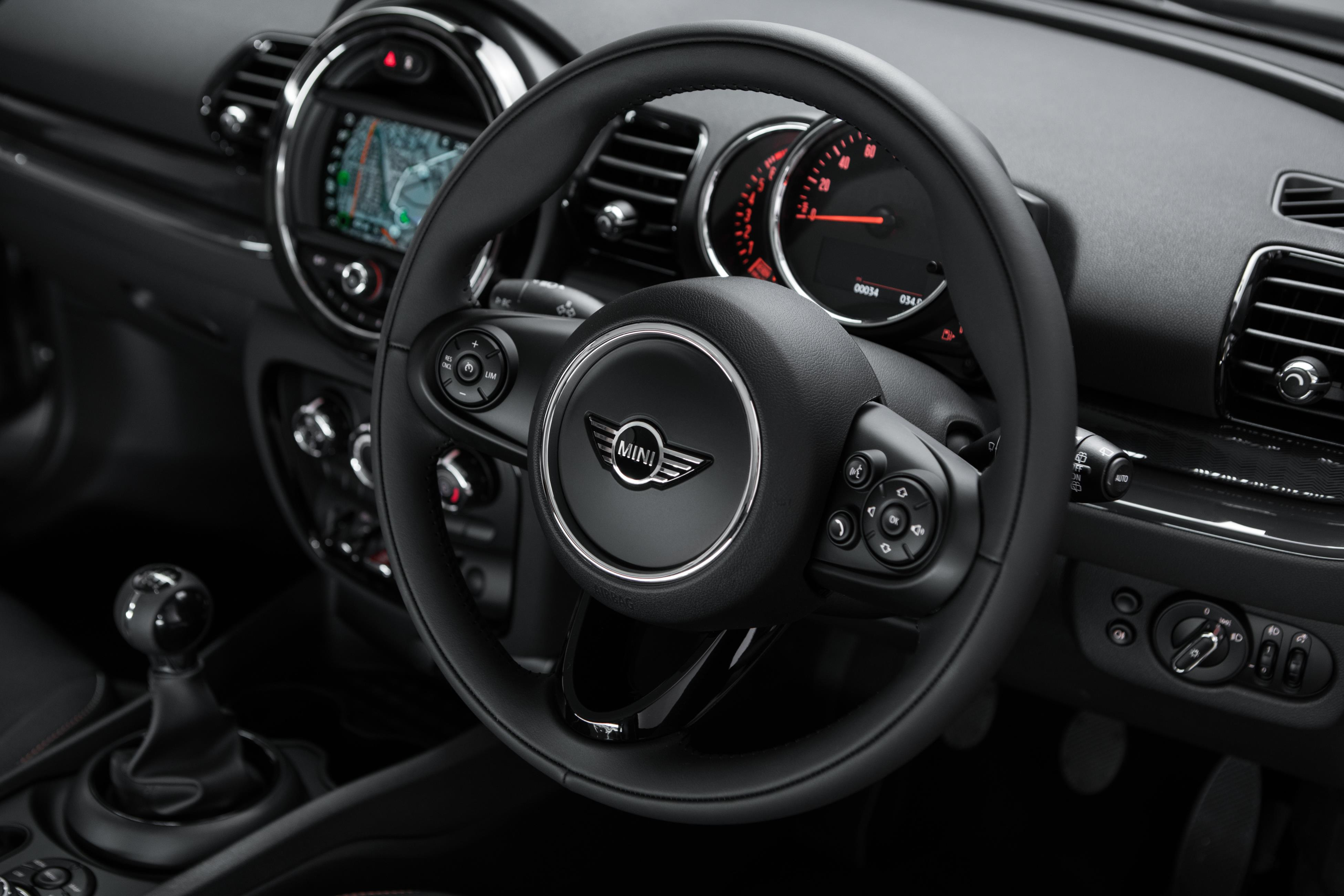 The sat-nav operates through the signature circular dial in the centre of the Mini’s dashboard, with its 6.5-inch display, however, Apple Car Play, DAB, Real Time Traffic Information (RTTI) and Intelligent Emergency Calling (E-call) and Rear Park Distance Control (PDC) are all standard, as well as Bluetooth hands-free functionality. Air conditioning, a sports steering wheel and cruise control are all carried over from the Mini Clubman standard equipment list. MINIMALISM Fuel Saving Technology is fitted to every Mini Clubman model, with features that include automatic stop/start, brake energy regeneration and a shift-point display.
