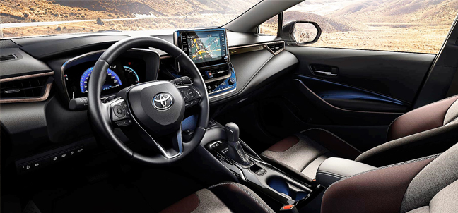While the Trek legend features on the exterior of the rear door, it is also present on the door sill strips and the cabin benefits from a tough, wool-like new fabric for its seat covers and door cards. As the new Corolla is purely petrol-electric hybrid driven, there exists a choice between the normal and familiar 1.8-litre version that started life in the Prius model, with the much punchier 2.0-litre alternative for buyers demanding the extra verve. In both cases, well over 50mpg should be achievable in normal motoring conditions, along with a reduced tax penalty arising from the hybrid status.