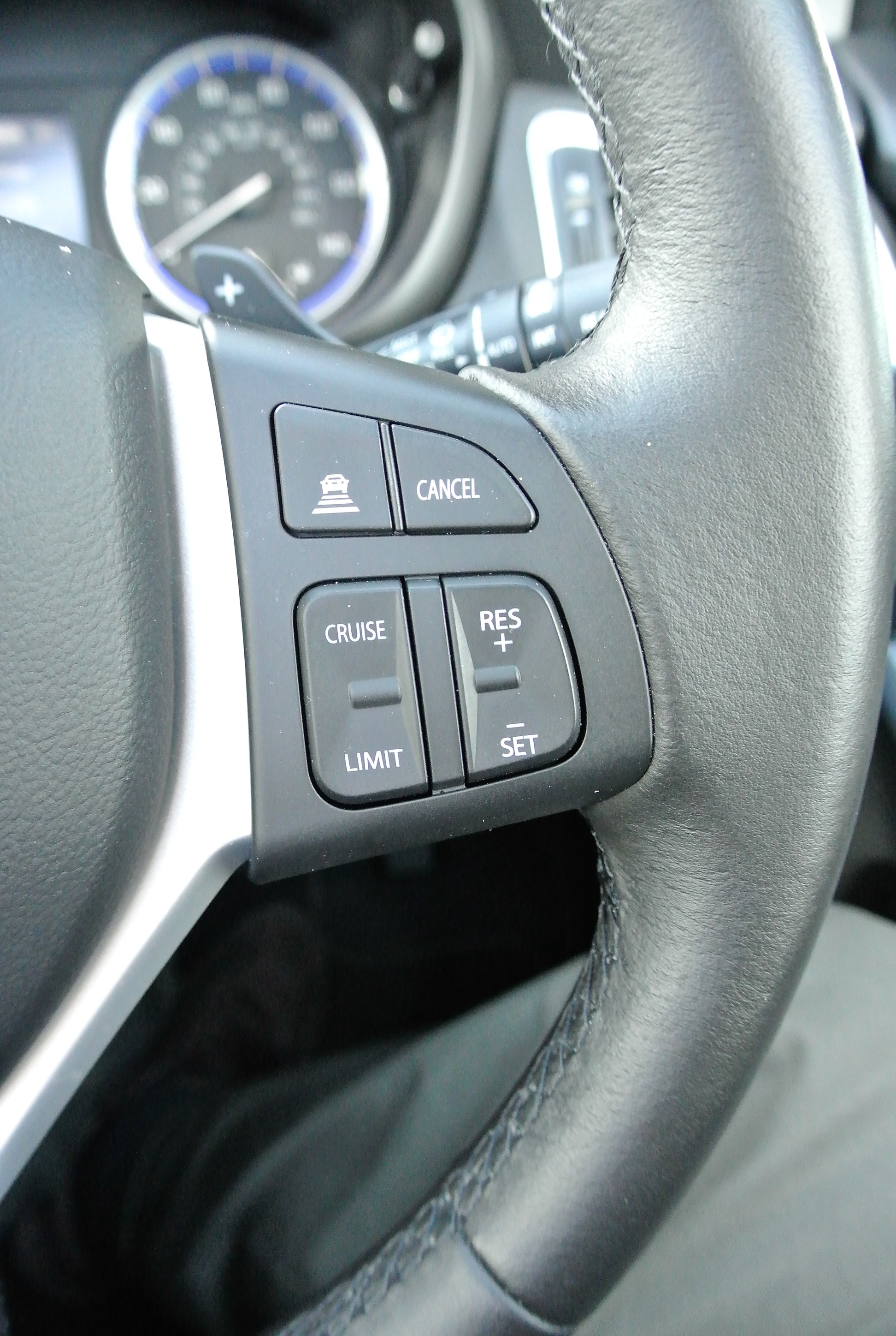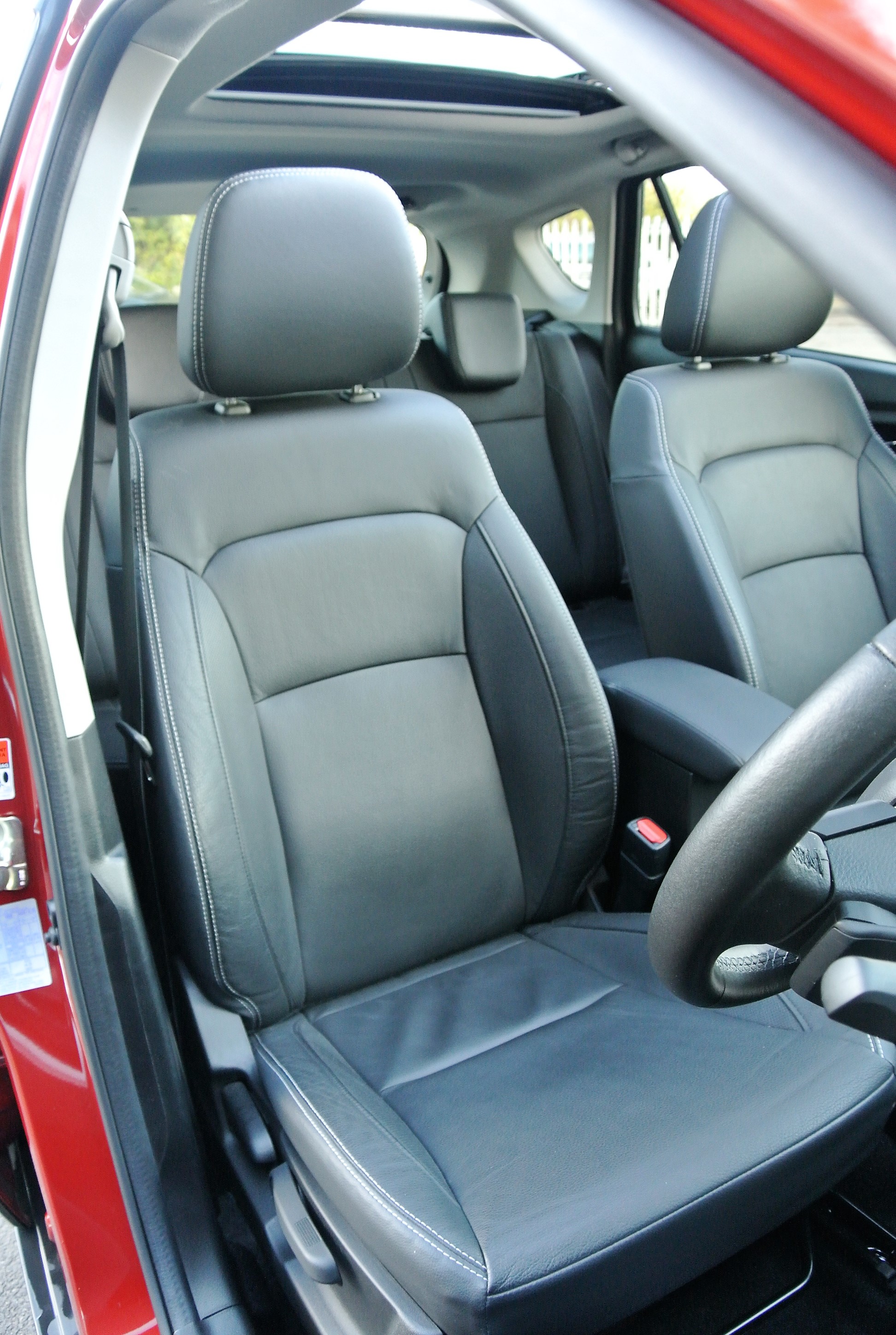 As the top SZ5 version in a limited palette of models, the hide-covered seats that are adjustable for rake, reach and recline are accommodating and exceptionally supportive. Leather is carried onto the steering wheel rim (rake and reach adjustable), parking brake handle and gear-selector. While the dashboard is not entirely ‘soft-touch’, the dark grey plastic plank across its main facia is compliant, a factor that does help greatly in reducing in-car noise and enhancing refinement. In terms of clarity, the S-Cross dash lacks nothing, yet remains uncomplicated and straightforward. The driver’s door closes quietly, with a pleasing clunk.