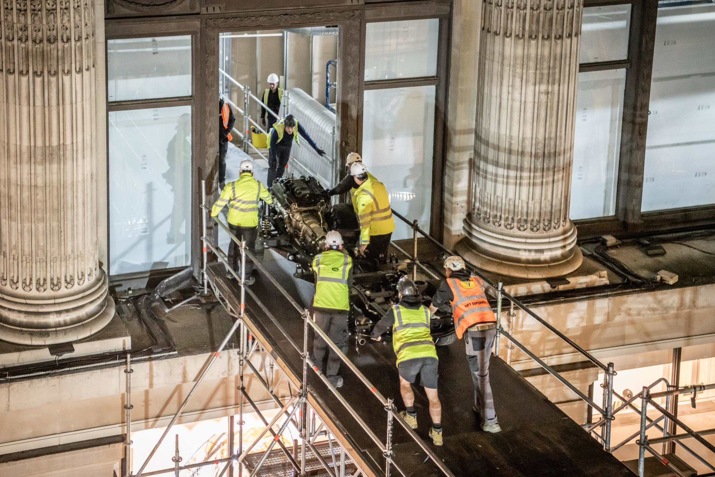 To fit through the first-floor window, at the central London store, the specially commissioned Defender was dismantled comprehensively and a team of experts from the factory was despatched to rebuild the vehicle over the following four days. Following completion, the one-off vehicle was placed under a protective cover, while Selfridges put the finishing touches to its new menswear department, ahead of its official opening on 29th October.