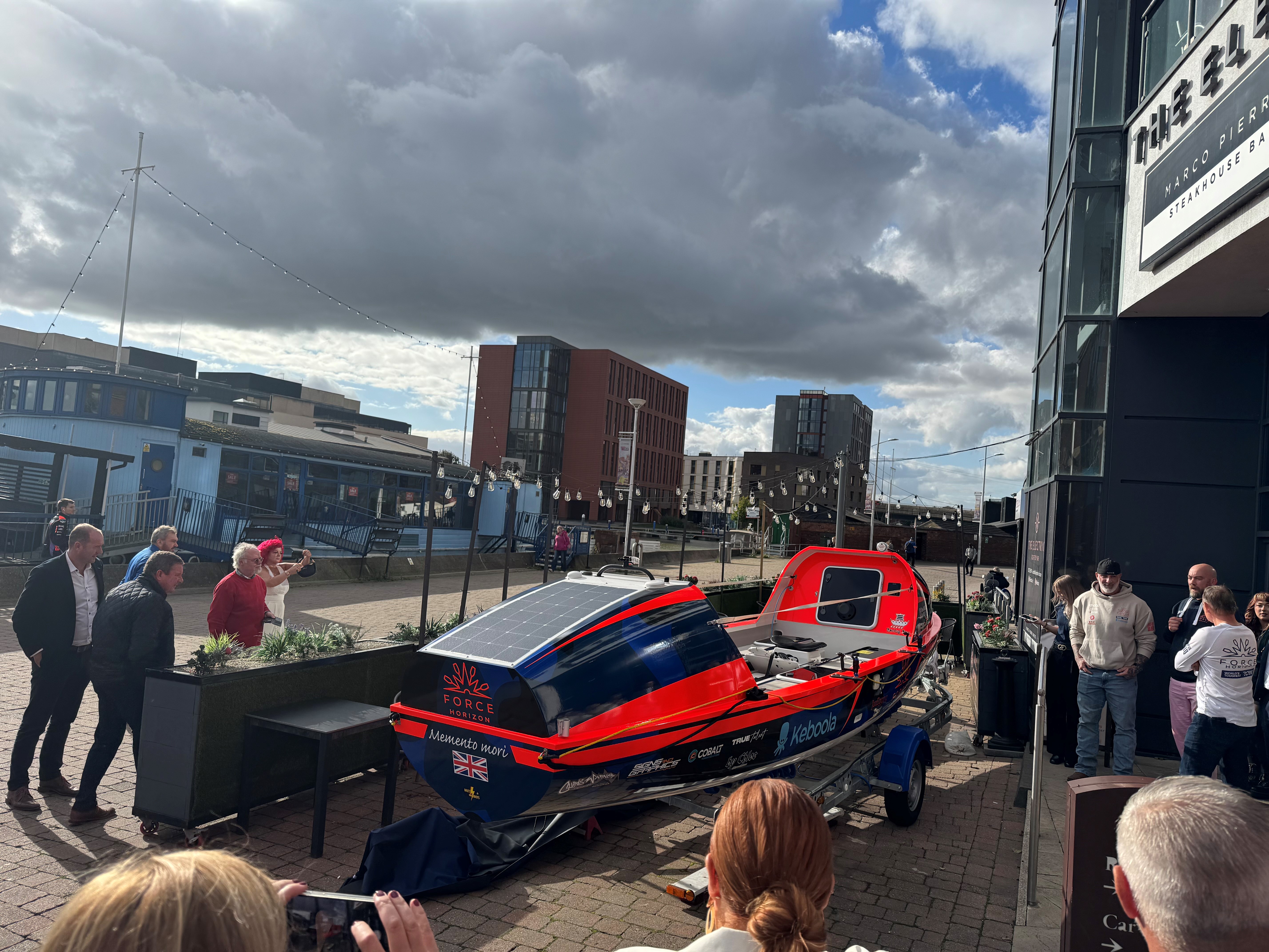 At an epic launch event at the DoubleTree by Hilton in Lincoln, RAF serviceman Kip Wells and teammate Chris Ambler unveiled the boat that will take them on the 3000-mile unsupported rowing race next year, named Momento Mori.